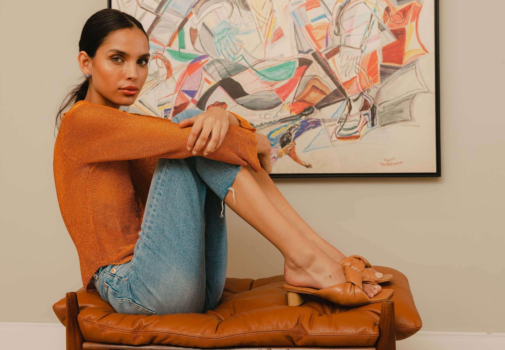 Premium Tan Leather Mules - Caroba Collection